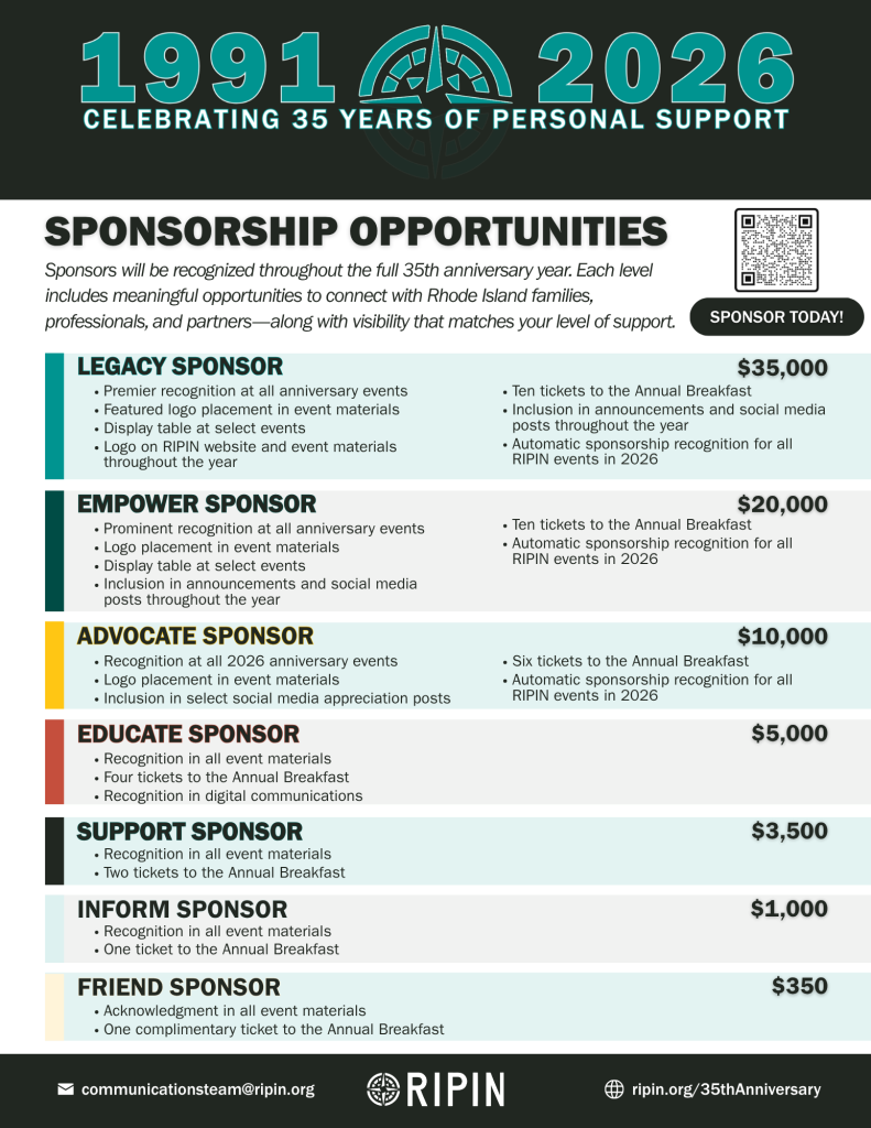 In 2026, RIPIN celebrates a remarkable milestone — 35 years of supporting Rhode Island families, caregivers, youth, and individuals navigating complex systems of care.